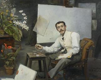 | Keywords: Henri-Ferdinand-Bellan Autoportrait-de-lartiste-dans-son-atelier.jpg Artwork creator Henri Ferdinand Bellan 1891 oil on canvas cm 161 200 object history exhibition history credit line Signée et datée en bas à droite dédicacée 'à mon frère Bellan Ditry 1891' accession number http //www galeriearyjan com/fr/artiste-1055-bellan-henri-ferdinand htm Henri Ferdinand Bellan 1891 paintings PD-old-auto-1923 1922 Self-portraits | ||||