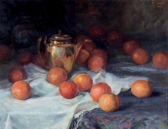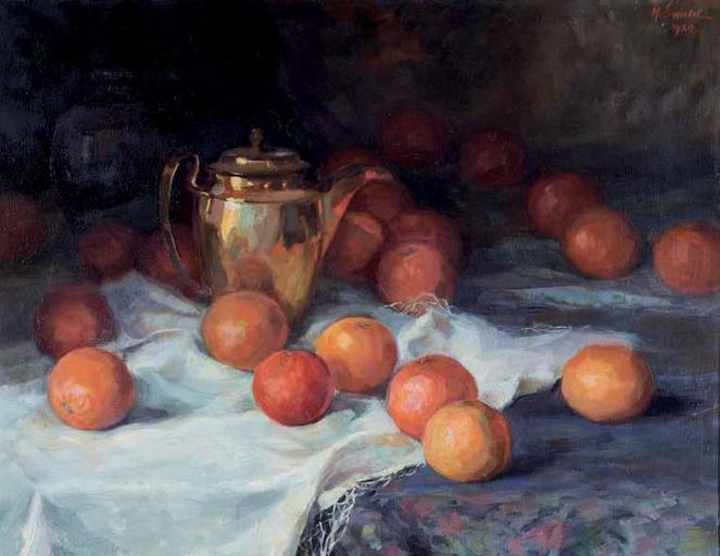 Keywords: Henrika Šantel - Tihožitje z oranžami in medenino.jpg Artwork creator Henrika Šantel en Still-life with Oranges and Brassware Natura morta amb taronges i atuell de llautó 1929 oil canvas cm 46 58 National Gallery of Slovenia http //www artnouveau eu/upload/magazine_pdf/17_herstory pdf artnouveau eu PD-old-auto 1940 Paintings by Henrika Šantel 1929 paintings in Slovenia 20th-century paintings in the National Gallery of Slovenia 20th-century still life paintings in Slovenia 20th-century oil on canvas paintings in Slovenia Paintings of oranges Brass objects Still life paintings of kitchenware Still life paintings of fruits 1920s still-life paintings