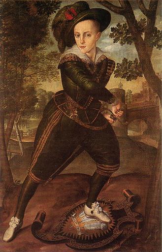 | Keywords: stuart english royalty englishroyalty portrait 16th century 16thcentury 17th century 17thcentury scotland united kingdom unitedkingdom britain studio of Isaac Oliver,miniature,circa 1610 Henry Frederick, Prince of Wales (19 February 1594 – 6 November 1612) was the eldest son of King James I & VI and Anne of Denmark. His name comes from grandfathers Henry Stuart, Lord Darnley and Frederick II of Denmark. Prince Henry was widely seen as a bright and promising heir to his father's throne. However, at the age of 18, he predeceased his father when he died of typhoid fever. Subsequently, the heirship to the English and Scottish thrones passed to his younger brother Charles. Many places in the Colony of Virginia were named in honour of Prince Henry before and after his death. He was born at Stirling Castle and became Duke of Rothesay, Earl of Carrick, Baron of Renfrew, Lord of the Isles and Prince and Great Steward of Scotland automatically on his birth. His father placed him in the care of Alexander Erskine, Earl of Mar, and out of the care of the boy's mother, because James worried that the mother's tendency toward Catholicism might affect the son. Although the child's removal caused enormous tension between Anna and James, Henry remained under the care of Mar's family until 1603, when James became King of England and his family moved south.[1] His tutor until he went to England was Sir George Lauder of The Bass, a Privy Counsellor — described as the King's "familiar councillor"[2] — and he was also tutored in music by Alfonso Ferrabosco the younger.The king "much preferred the role of schoolmaster than that of father", and wrote texts for the schooling of his offspring. James directed that Henry's household "should rather imitate a College than a Court",[3] or, as Sir Thomas Chaloner wrote in 1607, His Highness's household [...] was intended by the King for a courtly college or a collegiate court"[4] In 1605, Henry entered Magdalen College, Oxford, where the witty, outgoing, popular young man became interested in sports. His other interests included naval and military affairs, and national issues, about which he often disagreed with his father. He also disapproved with the way his father conducted the royal court, disliked Robert Carr, a favorite of his father, and esteemed Sir Walter Ralegh, wishing him released from the Tower of London.[1] The prince's popularity rose so high that it threatened his father. Relations between the two could be tense and on occasion surfaced in public. At one point, they were hunting near Royston when James I criticized his son for lacking enthusiasm for the chase, and Henry initially moved to strike his father with a cane but rode off. Most of the hunting party then followed the son.[3] "Upright to the point of priggishness, he fined all who swore in his presence", according to Charles Carlton, a biographer of Charles I, who described Henry as an "obdurate Protestant".[3] In addition to the alms box that Henry forced swearers to contribute to, he made sure his household attended church services. His religious views were influenced by the clerics in his household who were largely from a tradition of politicized Calvinism. To his preachers, Henry listened humbly, attentively and regularly to the sermons preached to his household, and once told his chaplain, Richard Milbourne, that he esteemed most the preachers with an attitude that suggested, "Sir, you must hear me diligently: you must have a care to observe what I say."[4] Henry is said to have disliked his younger brother, Charles, and teased him. Yet there is only one surviving anecdote between the two: When Charles was nine years of age, Henry snatched off the hat of a bishop and put it on the younger child's head, then told his younger brother that when he became king he would make Charles Archbishop of Canterbury, and then Charles would have a long robe to hide his ugly rickety legs. Charles stamped on the cap and had to be dragged off in tears. Following his father's accession to the throne of England in 1603, he became automatically Duke of Cornwall, and was invested Prince of Wales and Earl of Chester in 1610, thus uniting the six automatic and two traditional Scottish and English titles held by heirs-apparent to the throne(s) ever since that date. As a young man, Henry showed great promise and was beginning to be active in leadership matters. He was a friend of Sir Walter Ralegh. Among his activities, he was responsible for the reassignment of Sir Thomas Dale to the Virginia Company of London's struggling colony in North America. He died from typhoid fever at the age of 18. (The diagnosis can be made with reasonable certainty from written records of the post-mortem examination.) Henry was buried in Westminster Abbey. Prince Henry's death was widely regarded as a tragedy for the nation, some may consider prophetic. According to Charles Colton, "Few heirs to the English throne have been as widely and deeply mourned as Prince Henry." His body lay in state at St. James's Palace for four weeks as his father collected money for an extravagant funeral on December 7, when over a thousand people walked in the mile-long cortege to Westminster Abbey to hear the two-hour sermon delivered by the Archbishop of Canterbury. As Henry's body was lowered into the ground, his chief servants broke their staves of office at the grave. An insane man ran naked through the mourners, yelling that he was the boy's ghost.[3] Charles immediately fell ill after Henry's death, but was the chief mourner at the funeral, which James I (detesting funerals) refused to attend.[3] Upon his death, all of Henry's automatic titles passed to his younger brother, Charles, who, until then, had lived in Henry's shadow – Charles was created Prince of Wales and Earl of Chester four years later. Charles was not as well-regarded as Henry had been, and after he assumed the throne following the death of his father in 1625 as King 