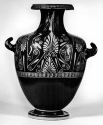 Keywords: Herakles Painter - Red-Figure "Kerch-Style" Hydria - Walters 48263 - Side B.jpg The amorous interactions of humans and immortals achieve a light-hearted almost dance-like quality on this hydria or water-jug Hermes in the center pursues a youth towards the right with Eros floating above them On the left a satyr advances from below towards a maiden who attempts to flee ca 360 BC Classical terracotta cm 31 3 19 9 h x diam ; at handles cm 25 1 w accession number 48 263 31250 Arthur Sambon Paris 1920 mode of acquisition unknown no 20 Henry Walters Baltimore 1926 mode of acquisition unknown Walters Art Museum Henry Walters Acquired by Henry Walters 1926 Things With Wings Mythological Figures in Ancient Greek Art The Walters Art Museum Baltimore 2005-2006 Things With Wings Mythological Figures in Ancient Greek Art Ward Museum Salisbury 2009 place of origin Athens Greece Walters Art Museum license Ancient Greek red-figure pottery in the Walters Art Museum Herakles Painter Media contributed by the Walters Art Museum needs category review |
