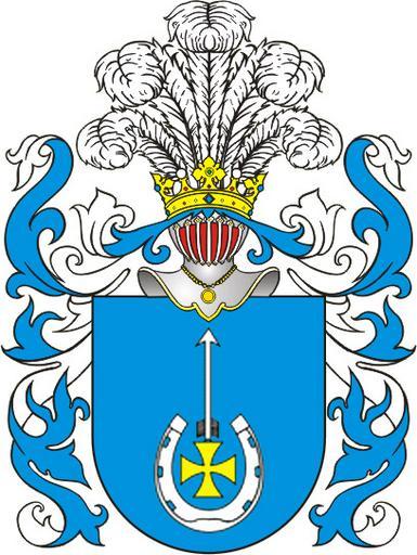 Keywords: Herb Bialynia.jpg Bialynia Polish coat of arms form wiki pl Insignia 1 cellpadding 5 cellspacing 0 colspan 4 style background Bisque Białynia - colspan 2 width 50 style background Cornsilk Blazonowanie colspan 2 width 50 style background Cornsilk Blazon - style background Cornsilk Tarcza W polu błękitnym podkowa srebrna na opak między ocelami której takaż rogacina na krzyżu kawalerskim złotym style background Cornsilk Escutcheon Azure in a horseshoe inverted Argent an arrow of the same on a cross pattée Or - style background Cornsilk Klejnot Pięć piór strusich style background Cornsilk Crest Five ostrich feathers POL COA Białynia svg Coats of arms of families of Poland Herb Bialyna Ostrich feathers in crest Polish nobleman crown and helmet Bialynia Arrows in heraldry Crosses or Horseshoes in heraldry |