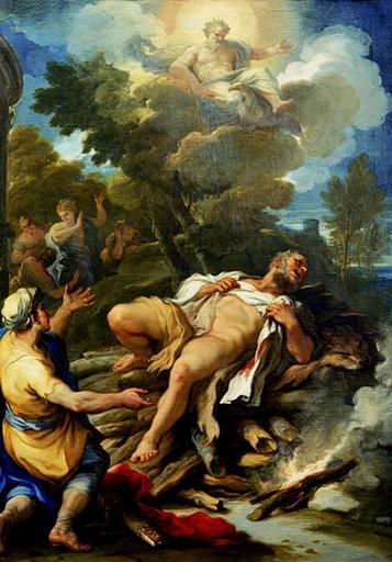 | Keywords: Hercules on the pyre by Luca Giordano.jpg  El lienzo representa a Hércules personaje clave de la mitilogía griega e hijo de Zeus abrasándose en la pira Hercules on the pyre Creator Luca Giordano Size cm 80 125 circa 1697 1700 Institution Monasterio de San Lorenzo El Escorial Oil on canvas PD-old-100 Unknown Heracles on paintings Paintings by Luca Giordano in the monastery de El Escorial 17th-century paintings in the monastery de El Escorial 1700 paintings 18th-century oil on canvas paintings 1700s mythological paintings Paintings of Greek mythology Mythological figures in nature Mythological paintings in Spain 1700s paintings from Italy 1700s paintings in Spain |