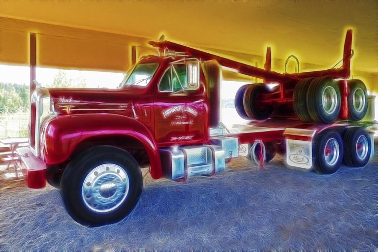 Keywords: heritage site onehundredeight mile house british columbia canada old logging truck red old ancient vintage antique wild west countryside old town heritage transportation forestry automobile