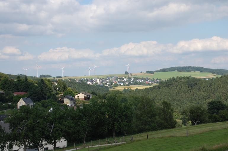 Keywords: Herl-Lorscheid02.jpg en Villages Herl front and Lorscheid back in the Hunsrück landscape Germany own Prankster 2008-06-21 Herl Lorscheid Wind turbines in Hunsrück