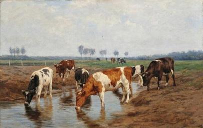 | Keywords: Hermann Baisch - Kühe im Wasser.jpg Hermann Baisch 1846 “1894 Technique oil canvas cm 70 3 110 2 object history credit line accession number http //www arcadja com/auctions/de/baisch_hermann/kunstler/1232/ Skinner Booton 2012 05 18 lot 227 via ARCADJA auction results PD-old-auto-1923 1894 Hermann Baisch Paintings of cattle |
