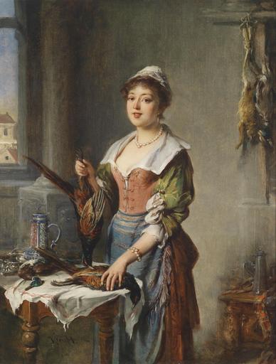 Keywords: Hermann Kern Wildbrethändlerin.jpg Wildbrethändlerin Kern H signature oil canvas 70 5 × 42 cm http //www dorotheum com by 1940 creator Hermann Kern PD-old-100 Images from Dorotheum Phasianidae in art Hermann Kern Paintings of women standing in kitchens Dead hares in art Dead birds in art Upside down Paintings of women with birds People wearing bracelets Standing females in art Females in rooms in art Females looking at viewer in art People and walls in art |