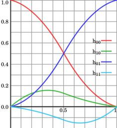 | Keywords: HermiteBasis.svg Hermite spline basis functions self-made in Gnuplot 2007-06-26 Berland ElectroKid <small> </small> Gnuplot 12691 1461 ElectroKid <small> </small> Gnuplot source code set terminal svg fname Vera fsize 18 set output 'HermiteBasis svg' set border 2 set xtics axis 1 1 set ytics nomirror 0 2 set xrange 0 1 set key right center box linewidth 1 plot 2 x x x - 3 x x + 1 with lines t 'h00' lt 1 lw 4 \ x x x - 2 x x + x with lines t 'h10' lt 2 lw 4 \ -2 x x x + 3 x x with lines t 'h01' lt 3 lw 4 \ x x x - x x with lines t 'h11' lt 4 lw 4 \ 0 with lines linetype -1 linewidth 1 notitle Use at least version 4 2 of Gnuplot Numerical analysis Interpolation Images with Gnuplot source code Basis functions Charles Hermite |