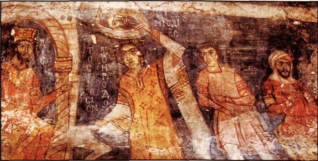 | Keywords: Herodes panagia episcopi.png  Fresco of Herodes the Great at the banquet From the church of Panagia Episcope on the Greek island of Santorini Matthaeos E Mendrinos Panagia Episcope “ The Byzantine Church of Santorini 2nd edition 2000 page 26 century 12 author PD Scan Panagia Episkopi Mesa Gonia Feast of Herod 12th-century Orthodox frescos Byzantine frescos in Greece |