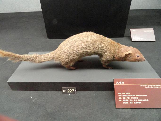 | Keywords: Herpestes javanicus - Kunming Natural History Museum of Zoology - DSC02474.JPG Taxidermy exhibit in the Kunming Natural History Museum of Zoology 昆明动物博物馆 Kunming Yunnan China I took this photograph 2011-08-10 03 00 05 Daderot Public domain Taxidermy in the Kunming Natural History Museum of Zoology Herpestes javanicus |