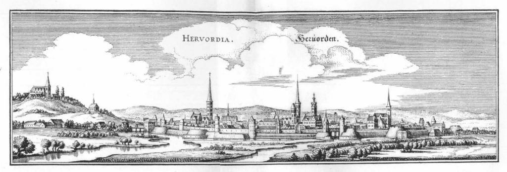 Keywords: Heruorden (Merian).jpg Author died more than 70 years ago - public domain 52 7 20 06 N 8 40 4 64 E region DE_heading SSE PD-old-100-1923 Aa Werre Views of Herford Churches in Herford Engravings by Matthäus Merian Merian Westphaliae Engravings of towns in Germany Defensive dykes City walls of Herford Werre in Herford |