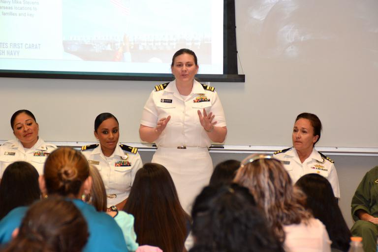 | Keywords: HESTEC Week 151007-N-ND850-190.jpg en EDINBURG Texas Oct 7 2015 Chippewa Falls Wis native Lt Cmdr Jamie Erickson operations officer with Navy Recruiting District San Antonio speaks to young Latinas and their mothers about life in the U S Navy during Latina Day held at the 2015 Hispanic Engineering Science and Technology HESTEC Week on the campus of the University of Texas-Rio Grande Valley Latina Day provided Latino officer and enlisted Sailors the direct opportunity to provide young Latinas and their mothers with grassroots perspectives on opportunities benefits and careers in the Navy The Sailors served as role models to inspire the young women to pursue a career in in the fields of science technology engineering and mathematics STEM HESTEC Week is an educational conference that features events geared towards promoting STEM education to people of all ages and backgrounds The Theme for this year's conference is Change the World through STEM U S Navy photo by Burrell Parmer Navy Recruiting District San Antonio Public Affairs/Released Unit Navy Media Content Services DVIDS Tags NMCS; DVIDS Bulk Import 2015-10-07 Burrell Parmer https //www dvidshub net/image/2225920/hestec-week 151007-N-ND850-190 2015-10-11 00 22 JOINT BASE SAN ANTONIO-RANDOLPH TX US PD-USGov-Military-Navy Joint Base San Antonio Images from DoD uploaded by Fæ |