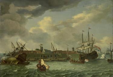 Keywords: Het eiland Onrust bij Batavia Rijksmuseum SK-A-739.jpeg accession number SK-A-739 nl Gezicht op de scheepswerf op het eiland Onrust bij Batavia Links wordt een oorlogsschip met op de spiegel het wapen van Amsterdam opgekalefaterd Rechts vuurt een oorlogsschip een salvo op het water enkele sloepen één voert een vlag met het wapen van de VOC Achter de gebouwen staan enkele molens en palmen Height cm 77 Width cm 110 exhibition history 1988-1988 De VOC in de kaart gekeken Enkhuizen Institution Rijksmuseum Technique oil canvas object history Acquisition 1881 object type Potential derivatives exist check http //commons wikimedia org/w/index php search Rijksmuseum+SK-A-739 this search PD-US PD-old-100 Data and photography rights All data and all images made available through the API are either in the public domain or are subject to a CC0 license https //www rijksmuseum nl/en/api/terms-and-conditions-of-use cc-zero place of creation http //www rijksmuseum nl/collectie/SK-A-739 Het eiland Onrust bij Batavia Q17322579 Uploaded with GWToolset Het eiland Onrust bij Batavia Rijksmuseum SK-A-739 http //www rijksmuseum nl/media/assets/SK-A-739 Images uploaded by Fæ Images from the Rijksmuseum Paintings by Abraham Storck in the Rijksmuseum Amsterdam Abraham Storck