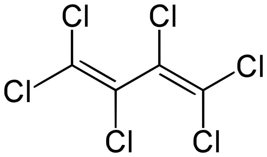 Keywords: Hexachlorobutadiene.svg en hexachlorobutadiene; Perchlorobutadiene; HCBD; Hexachlorobuta-1 3-diene; de Hexachlorbuta-1 3-dien; Tripen; Perchlorbutadien Own Yikrazuul Chloroalkenes Dienes Conjugated alkenes