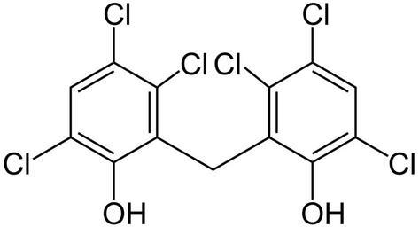 Keywords: Hexachlorophene.png Struktur von Hexachlorophen Structure of hexachlorophene own 2008-07-26 Codc thumb left original upload log de wikipedia Leyo CommonsHelper page de wikipedia Hexachlorophene png 2008-07-26 17 11 Codc 323×196× 3905 bytes <nowiki> Andere Versionen </nowiki> Hexachlorophene