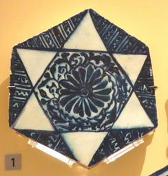 | Keywords: Hexagonal tile with a star and lotus, Syria, Damascus, c. 1420, underglaze-painted stonepaste - Royal Ontario Museum - DSC04777.JPG en Exhibit in the Royal Ontario Museum Toronto Ontario Canada This work is old enough so that it is in the public domain Photography was permitted in the museum without restriction 2013-10-08 17 21 54 own Daderot cc-zero Ceramics of Syria in the Royal Ontario Museum Uploaded with UploadWizard | ||||