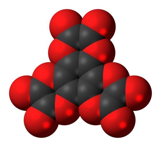 Keywords: Hexaphenol-trisoxalate-3D-spacefill.png Space-filling model of the hexaphenol trisoxalate molecule an oxocarbon Colour code 505050 Carbon C black<br> F51E1E Oxygen O red<br> 2011-02-20 own DS Visualizer Jynto talk Ball-and-stick version cc-zero Carbon oxides Oxalate esters benzene derivatives Images by Jynto Space-filling models |