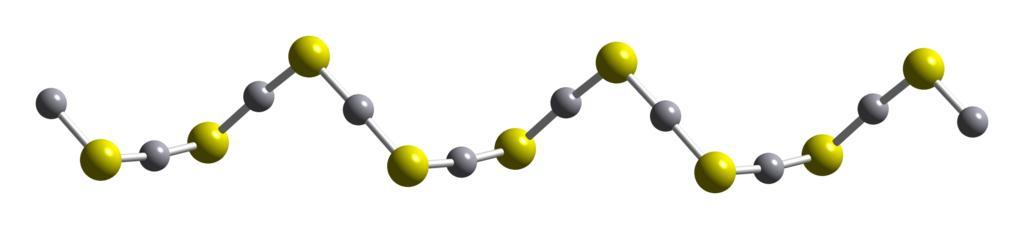 | Keywords: HgS-alpha-cinnabar-helix-from-xtal-1999-CM-3D-balls.png  Ball-and-stick diagram of part of the crystal structure of the alpha polymorph of mercury sulfide α-HgS It is found in nature as the mineral cinnabar Colour code Mercury Hg grey Sulfur S yellow Crystal structure from http //www oldenbourg-link com/loi/zkri Z Krist Supplement Issue 1999 16 95 “95 Image generated in http //www crystalmaker com/ CrystalMaker 8 2 Own 2010-07-16 Ben Mills Benjah-bmm27 Images by Ben Mills Crystal structure of cinnabar |