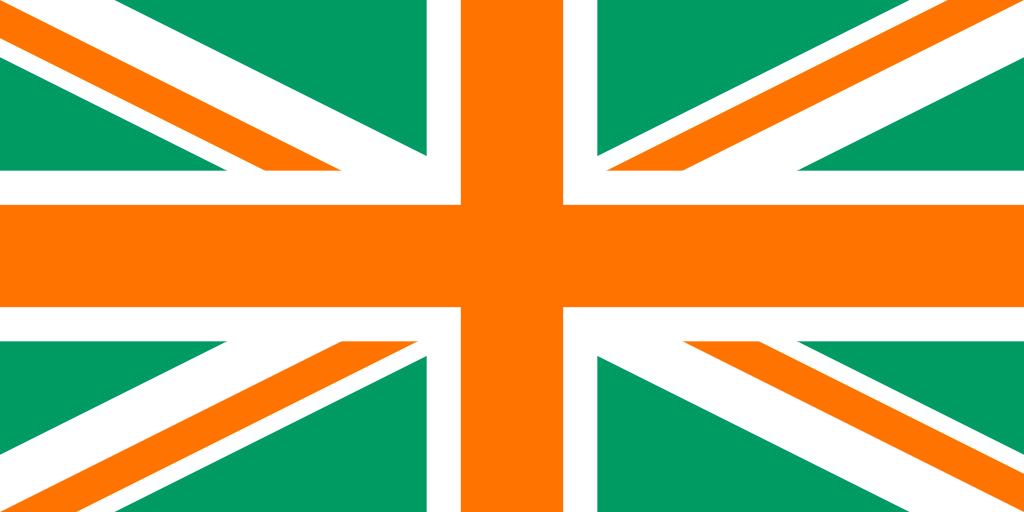 | Keywords: Hibernian Flag of the United Kingdom.svg Fictional variation on the Union Flag with the colours of the flag of the Republic of Ireland Based on the 8 September 2008 version of Flag of the United Kingdom svg with the SVG source further simplified Colours are from Flag of Ireland svg Both source images were public domain 2009-01-14 Anakin101 Green orange white flags SVG variations on flags of the United Kingdom | ||||