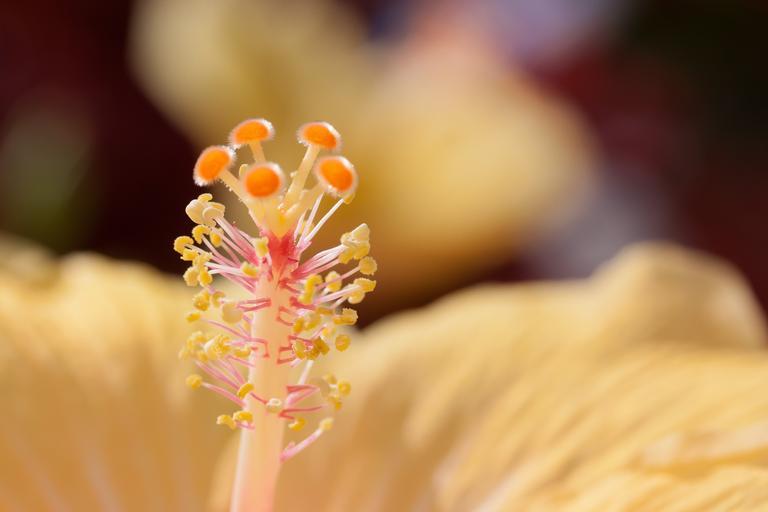 Keywords: hibiscus chinese rose eibisch chinese rose flowering plant mallow malvaceae flower flora yellow orange sepals stylus branches stamp columna ornamental plant close macro filigree pollen