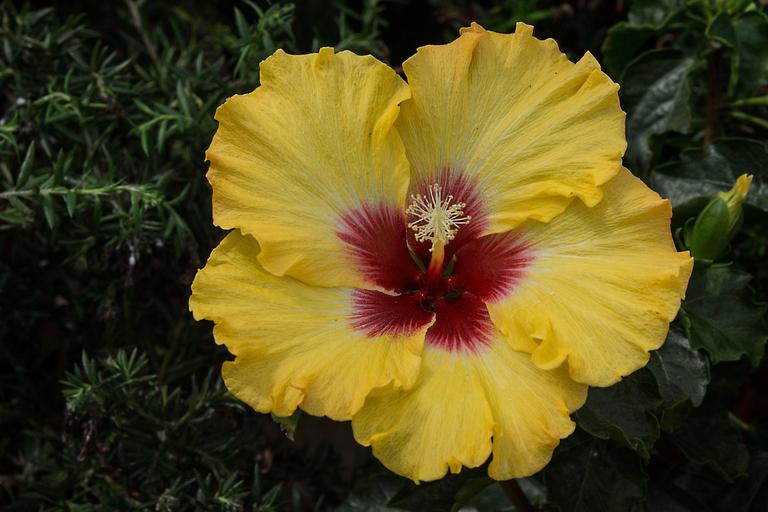 Keywords: hibiscus flower blossom bloom leaves exotic close yellow