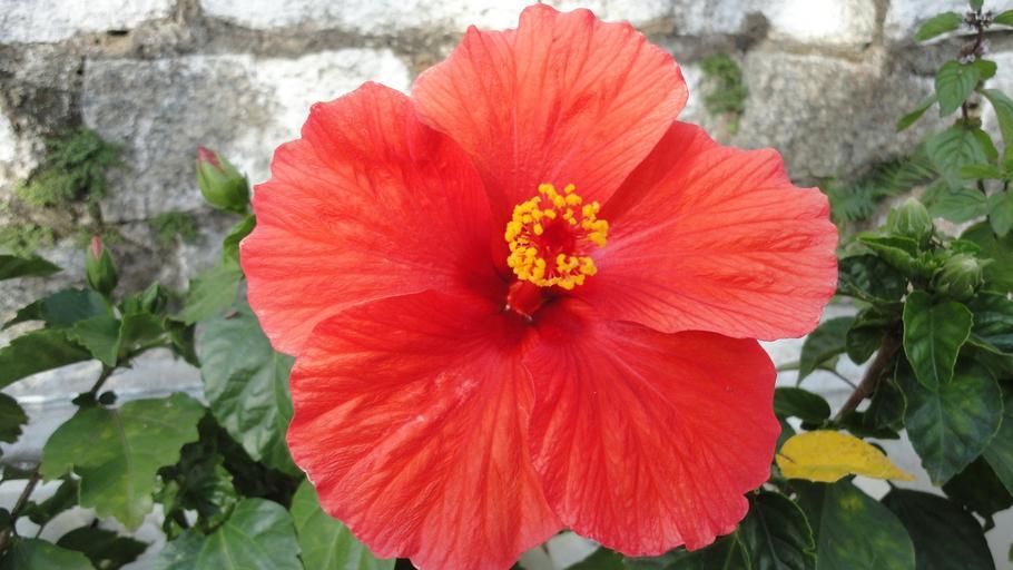 Keywords: hibiscus flower plant red garden green leaves