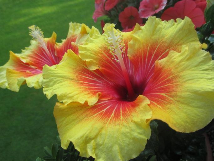Keywords: hibiscus flowers blossom bloom yellow red