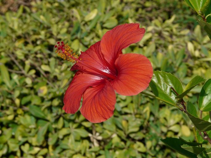 Keywords: hibiscus marshmallow mallow malvaceae ornamental plant ornamental flower blossom bloom flower red plant hibiscus flower close petals stamens filigree stamp pollen