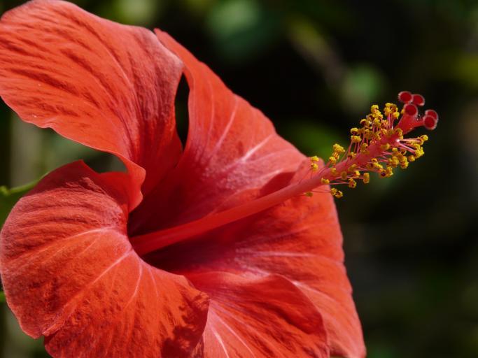 Keywords: hibiscus marshmallow mallow malvaceae ornamental plant ornamental flower blossom bloom flower red plant hibiscus flower close petals stamens filigree stamp pollen