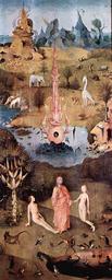 Keywords: Hieronymus Bosch 014b.jpg Artwork Creator Hieronymus Bosch The Garden of Earthly Delights 1500-1505 oil panel cm 220 97 institution Prado Provenance by 1517 Henry III Count of Nassau 1538 inherited by William I Prince of Orange 1568 confiscated by Fernando Álvarez de Toledo 3rd Duke of Alba Date unknown acquired by Don Fernando 1591 bought by Philip II of Spain 1593 transferred to the Monasterio de El Escorial 1939 transferred to the Museo del Prado Madrid from the Escorial Yorck Inv nr 2823 Other versions <gallery> File Hieronymus Bosch - The Garden of Earthly Delights - The Earthly Paradise Garden of Eden jpg Brighter version of the painting </gallery> Histogram restoration Blurpeace Hieronymus Bosch 014 jpg PD-old-100 PD-Art-YorckProject 16th-century paintings of Adam and Eve Book of Genesis The Garden of Earthly Delights left panel 02 |
