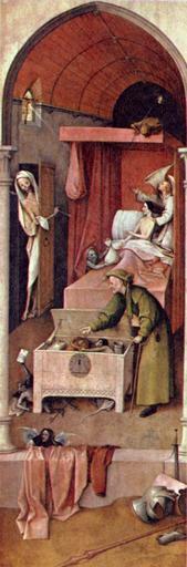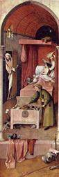 Keywords: Hieronymus Bosch 050.jpg Jheronimus Bosch 050 jpg Artwork LangSwitch Der Tod und der Geizhals Death and the Miser La mort du pauvre Mors pauperis De dood van een vrek <ref>http //boijmans cultuurwijs nl/onderw/ckvbosch/6vrek1 htm CKV 1 project Jheronimus Bosch en navolgers</ref> Alternate titles LangSwitch Allegory of Avarice <br />Death and the Usurer De Dood van de vrek <ref>De Tolnay 1986; ISBN 9061131642 p 346 </ref> <br />Sterfbed van een vrek<ref>Tent cat Jheronimus Bosch 's-Hertogenbosch 1967 cat nr 51 </ref> oil panel cm 92 6 30 8 institution National Gallery of Art Object history by Other date ~ 1826 Private collection England <br /> by Other date ~ 1926 art dealer Highgate Village London by 1926 Raven Massy and Lester art dealers London by 1932 Asscher and Walker art dealers London by 1932 Baron Joseph Van der Elst 1896-1971 Brussels 1951 3 17 purchase Samuel H Kress Foundation New York Baron Joseph Van der Elst Brussels ProvenanceEvent 1952 gift NGA Washington D C by exchange The Yorck Project 10 000 Meisterwerke der Malerei DVD-ROM 2002 ISBN 3936122202 Distributed by DIRECTMEDIA Publishing GmbH 1952 5 33 LangSwitch c 1494 or later 1490-1500 Ca 1494 of later 1490-1500 Creator Hieronymus Bosch http //mail wikipedia org/pipermail/wikide-l/2005-April/012195 html Other versions <gallery> File Jheronimus_Bosch_050 jpg Version from deitchman com File DeathOfTheMiser BoschDrawing jpg Copy </gallery> PD-old-100 PD-Art-YorckProject LangSwitch Notes Noten <references /> Death and the Miser by Hieronymus Bosch |