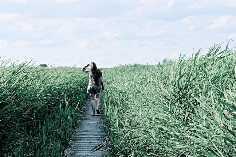 Keywords: high grass walk relax enjoy grasses nature promenade away relaxation recovery landscape go for a walk nature trail idyllic girl