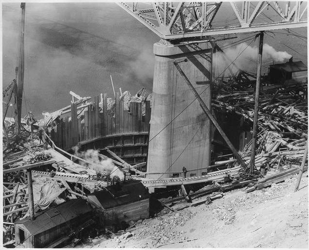 | Keywords: Highway bridge pier no. 2 showing sheet pile caisson constructed for pier enlargement - NARA - 294288.tiff 82004267 Scope and content Photograph from Volume Two of a series of photo albums documenting the construction of the Grand Coulee Dam and related work on the Columbia Basin Project General notes 294288 Local identifier Department of the Interior Bureau of Reclamation Engineering and Research Center 05/18/1981 - 03/04/1988 NARA's Rocky Mountain Region Denver NRGA Building 48 Denver Federal Center West 6th Avenue and Kipling Street Denver CO 80225-0307 1936-03-31 Record group Record Group 115 Records of the Bureau of Reclamation 1889 - 2008 Record group ARC 444 Photograph albums compiled 1903 - 1972 Series ARC 293611 File unit File unit ARC Variant control numbers NAIL Control Number NRG-115-CONSTPHO85006-COLBASIN21016 yes Other versions <gallery> File Highway bridge pier no 2 showing sheet pile caisson constructed for pier enlargement - NARA - 294288 tiff tif File Highway bridge pier no 2 showing sheet pile caisson constructed for pier enlargement - NARA - 294288 jpg jpg </gallery> NARA-cooperation PD-USGov National Register of Historic Places in Okanogan County Washington National Register of Historic Places in Douglas County Washington Grand Coulee Bridge NARA TIF images with categorized JPGs |