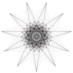 | Keywords: Higman-Sims-15.svg Higman-Sims graph as an orthogonal projection from a subset of the Leech lattice emphasizing a rotational symmetry of order 11 There are 11 possible such projections if we require all 22 points connected to the center point to form a regular 22-gon around it graphe de Higman-Sims comme projection orthogonale d'un sous-ensemble du réseau de Leech mettant en évidence une symétrie rotationnelle d'ordre 11 Il y a 11 telles projections possibles si on impose aux 22 points reliés au point central de former un 22-gone régulier autour de lui own Gro-Tsen 2010-10-30 Higman-Sims Graph |