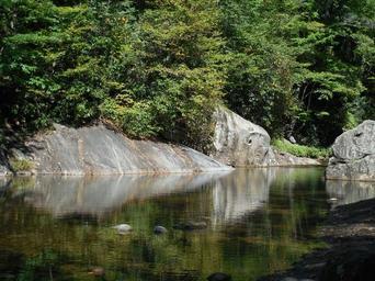 Keywords: hike river hiking nature water forest outdoor stream mountain creek landscape park wet natural scenic view green stone wood trail white rock moss liquid pool precipice still tranquil peaceful reflection reflective mirror image mirror image brown