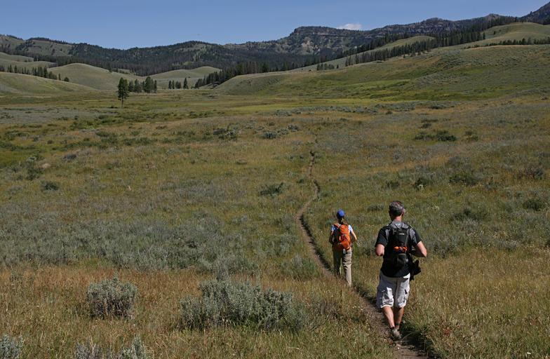 MAKE A MEME View Large Image yellowstone national park yellowstonenationalpark yellowstone national park nationalpark hikers outdoor landscape hill grassland field plain mountain mountainside foothill Hikers on Dailey Creek Trail; Jim Peaco; August 2010; Catalog ...