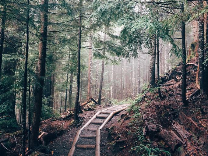 Keywords: hiking forest wood path trail trees nature outdoor hike walk backpack trekking environment misty woods trek soil branches dirt