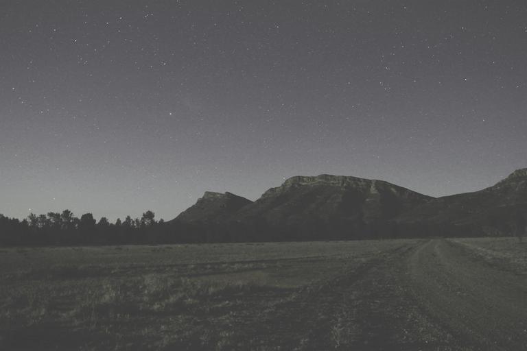 Keywords: hill mountain night stars shining nature sky landscape view country track road cosmos universe astrophotography astronomy dark sparkling rock range