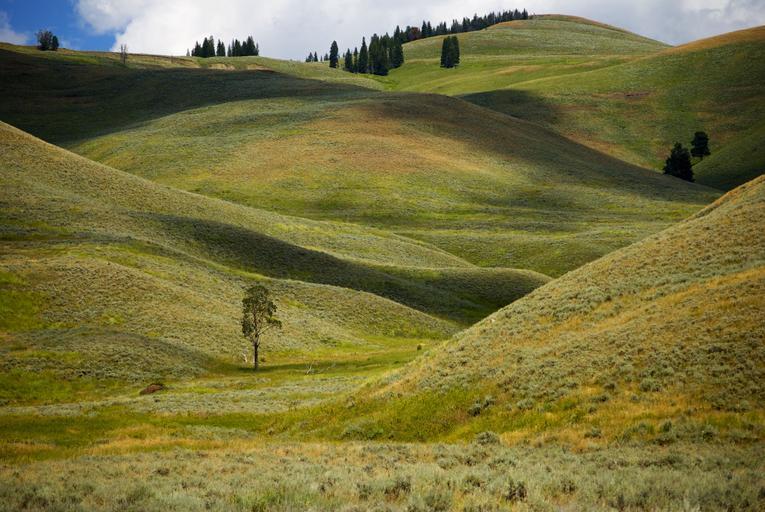 Keywords: hills green grass yellowstone outdoor landscape scenery nature summer