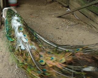 Keywords: Hillview Farms peacock.jpg en Peacock 2012-07-14 own Tomwsulcer cc-zero Uploaded with UploadWizard Pavo cristatus captive male back