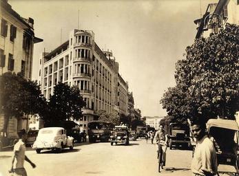 Keywords: Hindustan Building, Calcutta in 1945.jpg Hindusthan building one of the most modern in Calcutta was built for an insurance company but occupied upon its completion by the U S Army Locate in the heart of the city it is the nerve center of all military business containing post office finance office Base Section offices air rail booking offices a radio staiton giant post oxchange officers mess and living quarters signal offices and others The South Asia Section of the Van Pelt Library University of Pennsylvania recently acquired from a bookdealer a photograph album consisting of 60 photographs of Calcutta taken most likely between 1945-1946 The photographer Mr Clyde Waddell also provided the interesting glosses accompanying each photograph Several attested copies of this work has emerged including one with a 'title page' held by the Southeastern Louisiana University in Hammond Louisiana Mr Waddell was a military photographer Many of his captions sound like annotations that would be found in a typical military magazine The album begins with several general long shots of Calcutta and ends with a picture of dhobi-s washermen washing clothes The text accompanying the last photograph also sounds as if the author intended to finish with that picture of one of the great mysteries of India The annotations have been included because of their intrinsic interest not only to the photographs but to a 'typical' American impression of India at this time 1945 http //www library upenn edu/collections/sasia/calcutta1947/ Clyde Waddell other versions PD-USGov Uploaded with UploadWizard Van Pelt Library University of Pennsylvania - Clyde Waddell Calcutta 1940's photos Buildings in Kolkata |