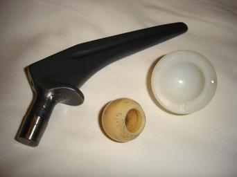 Keywords: Hip prosthesis.jpg A titanium hip prosthesis with a ceramic head and polyethylene acetabular cup Source Originally uploaded by Nuno Nogueira en User Nmnogueira to the English Wikipedia on 18 10 14 October 2006; according to the upload comment Nuno Nogueira en User Nmnogueira is the original creator of the image and released it as public domain Nuno Nogueira Hip Hip fractures Joint prostheses Ceramic materials Spherical joints Femur