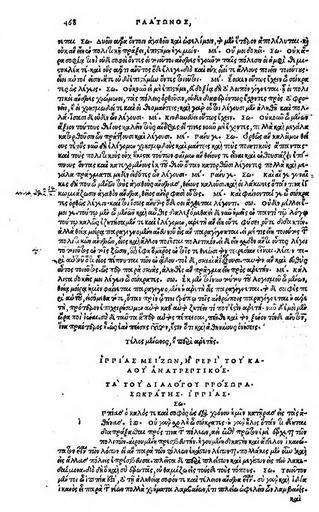 | Keywords: Hippias maior beginning. Editio princeps.jpg en Hippias maior beginning Editio princeps Venice 1513 de Hippias maior Anfang Editio princeps Venedig 1513 1513 editio princeps Plato PD-old-100 Omnia Platonis Opera editio princeps Uploaded with UploadWizard |