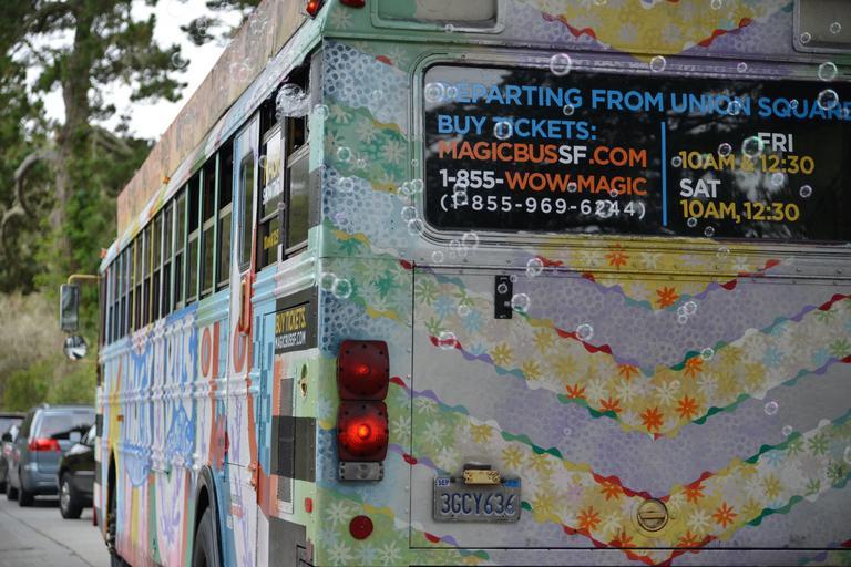 Keywords: hippie bus soap bubbles color transport san francisco tourism