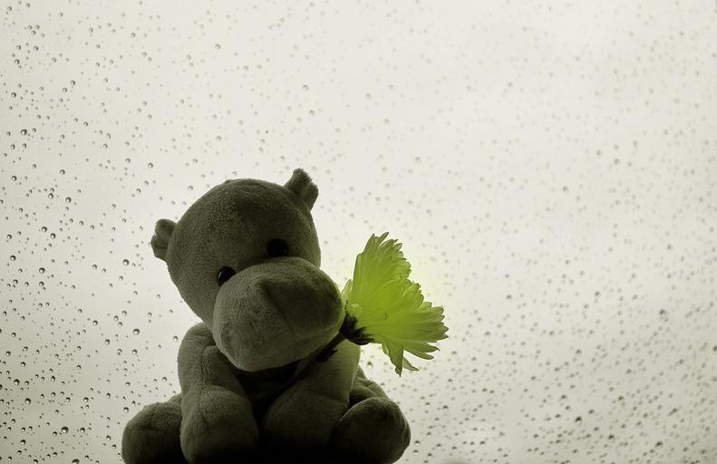 Keywords: hippo raindrops rain drops background plush toy flowers flower plants nature macro season gift love valentine's day decoration ornament