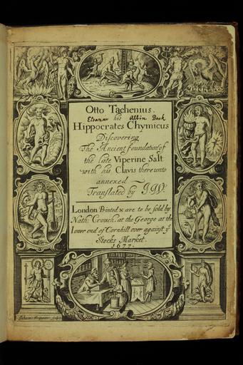 Keywords: Hippocrates chymicus 1677 Title Page AQ7 (3).jpg Otto Tachenius died circa 1670 London Printed and are to be sold by N Crouch 1677 As in other branches of alchemy new ideas were attributed to great figures of the past in this case the ancient physician Hippocrates Chemical medicine linked metallurgy top in this image to the apothecary shop bottom http //othmerlib chemheritage org/record b1036814~S6 Catalog Information From the copy in the Roy G Neville Historical Chemical Library http //www chemheritage org/ Chemical Heritage Foundation Downloaded with permission from the Chemical Heritage Foundation as part of the Wikipedian in Residence initiative Chemical Heritage Foundation http //www chemheritage org/ Chemical Heritage Foundation 1677 PD-old-100 PD-old-100 cc-by-3 0 Chemical Heritage Foundation Images from the Chemical Heritage Foundation Alchemy books |