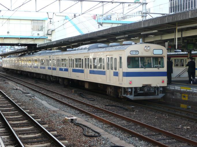 Keywords: Hiroshima station train.JPG en 広島駅構内 線 自身で撮影 ぺ 家音 2010年1 1日 Cc-zero JNR 103 JR West Trains at Hiroshima Station Local trains of Sanyō Main Line 2009 in rail transport in Japan