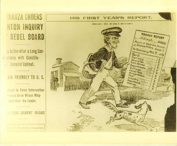 Keywords: newspaper article cartoon political president wilson text Local Accession Number: 2072 Description: Teacher and pupil are one and the same for Wilson's first year report card. Photographer: N/A Source: John T. McCutcheon, Princeton University Library Size: 10x8 Medium: Print, Black and White Date: 1914 Local Accession Number: 2072 Description: Teacher and pupil are one and the same for Wilson's first year report card. Photographer: N/A Source: John T. McCutcheon, Princeton University Library Size: 10x8 Medium: Print, Black and White Date: 1914 |