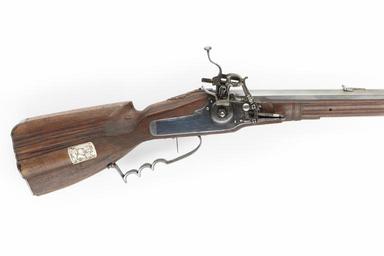 | Keywords: Hjullåsbössa, räfflad, 1670 - Skoklosters slott - 90982.tif LSH artwork sv Tysk tillverkning ca 1670 Åttkantig pipa av stål åtta räfflor På kammaren inslaget H M L Stöckel nr 2981 endast H L upptaget Thüringen ca 1670 Ståndsikte av stål Stolpkorn av mässing <br/>Hjullås Plant blånerat låsbleck av stål bakåt avsmalnande genom två fall Låg kullrig hjulkapsel smidd i ett med låsblecket Hjulkapseln har en graverad lagerkrans samt en sköld med spira Bakåtböjd krutskärm Hane med lös överkäke käkarna svagt kullriga Fingergreppet avslutas i platt knapp Hankropp i form av c-volut <br/>Hel stock av valnöt Tysk fusilkolv profielrad ovanför kolvlådan Tyskt anslag Kolvlådelockets främre del har benplatta med graverat lejon bakom svansskruvbladet skuren palmett På anslaget 2 hjortar och hind utskurna ur ben Två låsskruvar med blomformiga benunderlägg Näsband och rörka av graverat ben Varbygel med tre fingerlägen Avtryckare med snälltryck original caption Hjullåsbössa räfflad 1670 ca 1670 bone - steel - walnut size mm 687 pipa size mm 1030 size mm 190 SKO H M L; 24 place of origin Thüringen DE original filename sm_dig7659 34041 inventory number SKO 13088 90982 CC-BY-SA Erik Lernestål Muskets Photographs of weapons by Erik Lernestål Media contributed by LSH dim-with multiple size templates Media contributed by LSH 2016-05 |