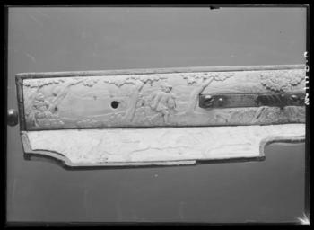Keywords: Hjullåsstudsare, Westphalen ca 1660 - Livrustkammaren - 70432.tif LSH artwork sv Åttsidig sjuräfflad pipa bombredd 2 8 mm Rektangulärt svansskruvblad På kammaren en sköldformig stämpel med hand och därovanför tre otydliga bokstäver G H N LRK vägl 1921 155 Dekor i form av graverade blomrankor på kammaren runt siktet och bakom kornet På kammaren dessutom ett fält med landskap med en hjort och två hundar Riktmedel Ståndsikte av stål med bred u-formig skärm Spolformigt korn av mässing båda inlaxade två laxningar för siktet Fästning Pipan fäst med krysskruv underifrån främre varbygelskruven samt tre pipstift av trä Hjullås av tysk typ plant låsbleck l 205 mm Dekor i form av graverade blomrankor i låg relief mot mörkskrafferad bakgrund Bakom hjulet ett ovalt fält med landskap med en kavalleristrid Utanpåliggande hjul fäst med halvcirkelformig uppåt breddad ring fäst med två skruvar kl 3 och 9 Svängd eldskärm avslutad med horisontell hjärtformig spets Fängpannelock med rörlig arm lockets framkant fasad och försedd med graverad dekor svängt rundat fingergrepp framtill avslutat med ett treflikigt blad Hane med fyrsidig kropp med rundad räfflad utsida ringformig hanhals med stor skärm lös överkäke Hals och käkar graverade som fågelhuvuden Uppåtböjt fingergrepp avslutat med en rund platt med spiralgravering Käkskruv med fyrsidigt huvud upptill koniskt med kulformig avslutning Hanfjäder med fasade kanter konturerad studel med glasögonformig genombrytning Avtryckarstången och fängpannelockets stoppfjädrar blånerade Fästning Två låsskruvar Avtryckare med konturerat och profilerat snälltryck Helstock av rödmålat trä rödbok nästan helt täckt med elfenbensplattor med snidad dekor Kolv av tysk typ med kolvlåda och vinge framtill avslutad med volut Den snidade dekoren föreställer landskap med jaktscener se Hellner Kolvlådelock av elfenben Bakplåt av elfenben med en satyr Kolvkula av stål Spetsrörka av elfenben med maskaron Bred varbygel av stål med tre fingerlägen korta genombrutna armar på bygeln graverad rankdekor samt ovalt fält med landskap med jägare hund och hjort Tillbehör Laddstock av rödmålat trä l 781 mm i ena änden ett invändigt gängat stålrör l 120 mm I den andra en benskoning l 42 Plattan kommer fram ur munnen på ett snidat fiskhuvud Gåva till Karl XI från landshövdingen friherre Augustin Leijonsköld 1634-1682 original caption ca 1660 steel e1247 - eldvapen - pipa lås riktmedel och beslag material stål - brass e4 - eldvapen - riktmedel material mässing - ivory e78 - eldvapen - stockbeslag och stockdekor material elfenben - beech e3 - eldvapen - stock material rödbok g 4280 size mm 774 pipa size mm 1068 LRK Karl XI av Sverige Augustin Leijonsköld basutställning Gallica 1945 Livrustkammarens basutställning 1978 Krigets prakt 2003-2004 place of origin DE Westphalia original filename LN_B16588_019468 39530 inventory number LRK 2920 70432 CC0 Hjullåsstudsare Westphalen ca 1660 - Livrustkammaren - 70432-negative tif <gallery caption Different images of same object > File Hjullåsstudsare Westphalen ca 1660 - Livrustkammaren - 43315 tif File Hjullåsstudsare Westphalen ca 1660 - Livrustkammaren - 10506 tif File Hjullåsstudsare Westphalen ca 1660 - Livrustkammaren - 27630 tif File Hjullåsstudsare Westphalen ca 1660 - Livrustkammaren - 19068 tif File Hjullåsstudsare Westphalen ca 1660 - Livrustkammaren - 10775 tif File Hjullåsstudsare Westphalen ca 1660 - Livrustkammaren - 78992 tif File Hjullåsstudsare Westphalen ca 1660 - Livrustkammaren - 44749 tif File Hjullåsstudsare Westphalen ca 1660 - Livrustkammaren - 60420 tif File Hjullåsstudsare Westphalen ca 1660 - Livrustkammaren - 1946 tif File Hjullåsstudsare Westphalen ca 1660 - Livrustkammaren - 26180 tif File Hjullåsstudsare Westphalen ca 1660 - Livrustkammaren - 61870 tif File Hjullåsstudsare - Livrustkammaren - 51368 tif File Hjullåsstudsare Westphalen ca 1660 - Livrustkammaren - 53310 tif File Hjullåsstudsare Westphalen ca 1660 - Livrustkammaren - 1945 tif File Hjullåsstudsare Westphalen ca 1660 - Livrustkammaren - 36191 tif File Hjullåsstudsare Westphalen ca 1660 - Livrustkammaren - 78991 tif File Hjullåsstudsare Westphalen ca 1660 - Livrustkammaren - 78990 tif File Hjullåsstudsare Westphalen ca 1660 - Livrustkammaren - 60464 tif File Hjullåsstudsare Westphalen ca 1660 - Livrustkammaren - 77541 tif File Hjullåsstudsare Westphalen ca 1660 - Livrustkammaren - 70431 tif File Hjullåsstudsare Westphalen ca 1660 - Livrustkammaren - 71153 tif File Hjullåsstudsare Westphalen ca 1660 - Livrustkammaren - 61871 tif File Hjullåsstudsare Westphalen ca 1660 - Livrustkammaren - 60459 tif File Hjullåsstudsare Karl XI - Livrustkammaren - 31010 tif File Hjullåsstudsare Westphalen ca 1660 - Livrustkammaren - 53309 tif File Hjullåsstudsare - Livrustkammaren - 95341 tif File Hjullåsstudsare Westphalen ca 1660 - Livrustkammaren - 70433 tif </gallery> Muskets Media contributed by LSH dim-with multiple size templates Media contributed by LSH 2016-12 |