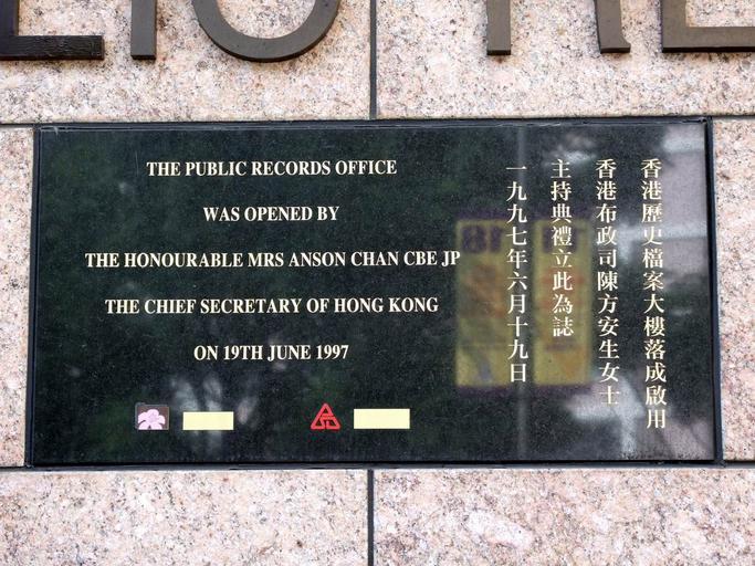 Keywords: HK HongKongPublicRecordsBuilding Stone.JPG zh 香港歷史檔案大樓揭幕典禮銘刻 own Self took photo 2007-10-22 Chong Fat zh Chinese Wikipedia Chong Fat Resizes by ACDSee v 4 0 Anson Chan Fang On Sang 1997 in Hong Kong Hong Kong Public Records Building Plaques in Hong Kong